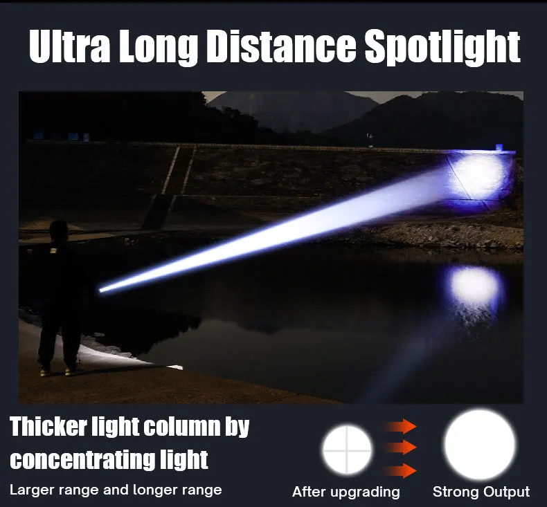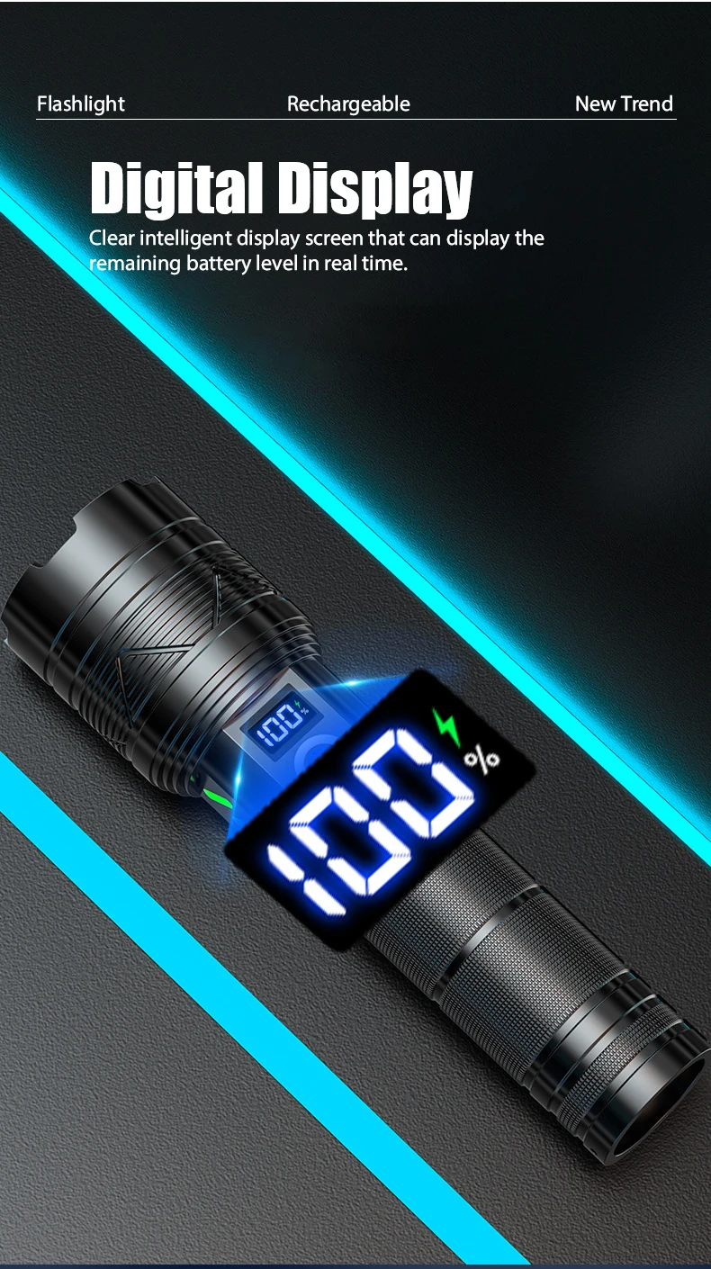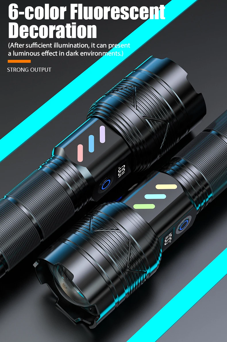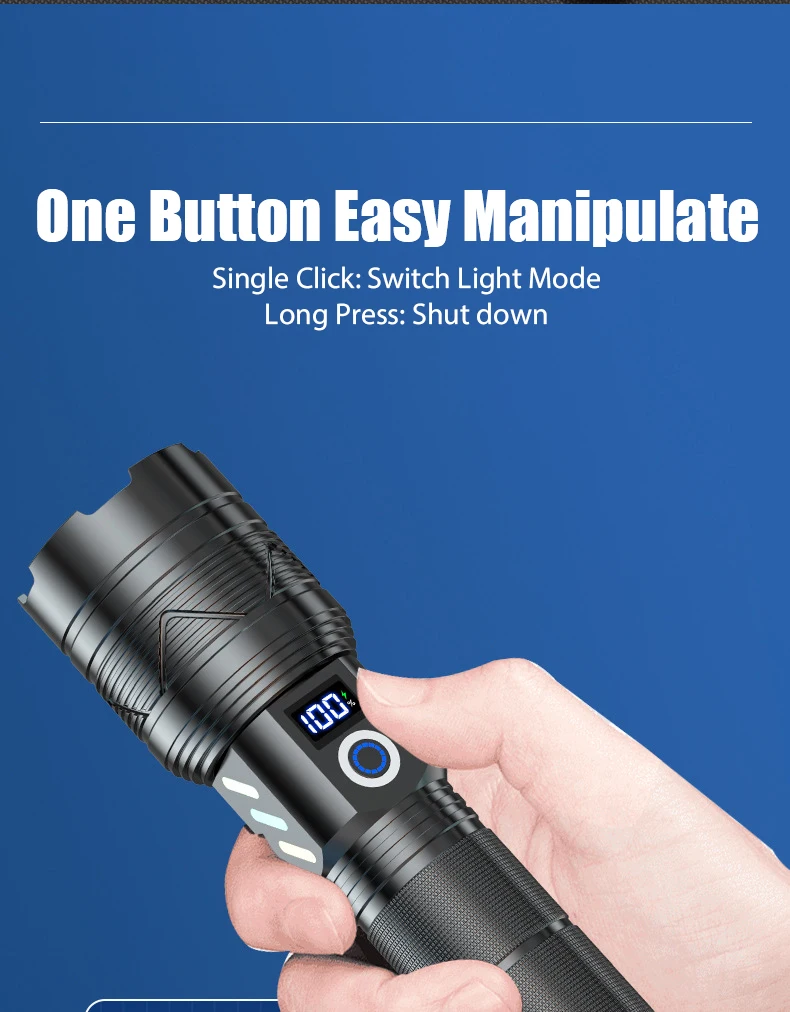 Specifications: Material: Durable ABS Plastic Light Output: 1000LM High Power LED Battery Life: Up to 50,000 hours Modes: 5 Lighting Modes (Strong, Medium, Weak, Strobe, SOS) Zoom Function: Telescopic Zoom for Focus Adjustment Emergency Power Bank: Yes Features: **Illuminate Your Adventures** The SKYRAY SK06 1000LM Flashlights Zoom Torch Light is a beacon of light for outdoor enthusiasts and campers. With a robust 1000LM output, this high power LED flashlight is designed to provide ample illumination in dark environments, ensuring safety and visibility. The SK06's telescopic zoom feature allows you to adjust the focus, transitioning from a spotlight to a floodlight with ease, making it an ideal tool for both far and near lighting needs. **Intelligent Design for the Outdoors** The SKYRAY SK06 is not just a flashlight; it's a smart companion for your outdoor adventures. The digital display provides a clear, real-time battery level indicator, ensuring you're always aware of your light's power status. The SK06's intelligent design extends to its emergency power bank functionality, enabling you to charge your mobile devices when you're away from civilization. **Built to Last and Versatile** Constructed from automotive-grade materials, the SKYRAY SK06 is built to withstand the rigors of outdoor use. Its robust design ensures a service life of up to 50,000 hours, providing consistent, flicker-free lighting. The SK06's versatility is further demonstrated by its five lighting modes, including a strobe and SOS feature, making it a reliable tool for various situations. Remember, the SKYRAY SK06 is not just a flashlight; it's a dependable companion for all your outdoor needs.
