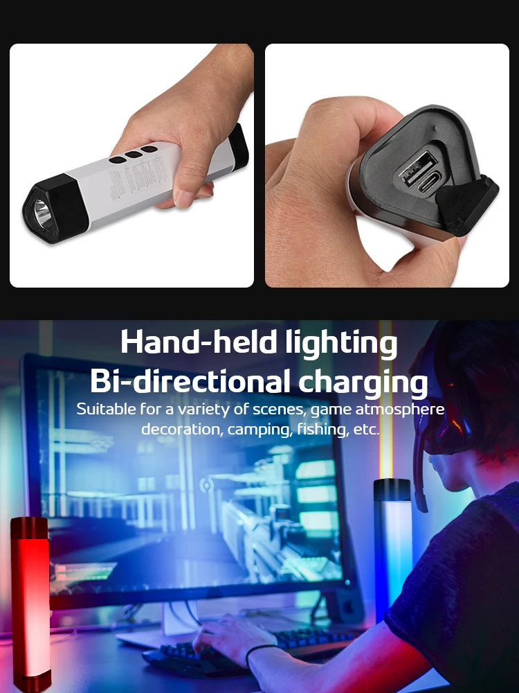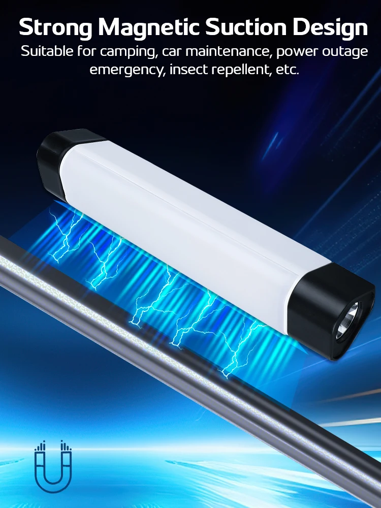 The shell is made of ABS, with strong magnetic adsorption to adapt to challenging environments. It can adhere to metal surfaces such as car bodies.Compact and lightweight, it has a four-stage battery indicator: all four green lights indicate full power; two or three green lights indicate remaining power; one green light indicates low power. Suitable for camping, car repair, power outage emergencies, insect repelling, etc. It supports emergency power discharge with a maximum output power of 5V 2A.